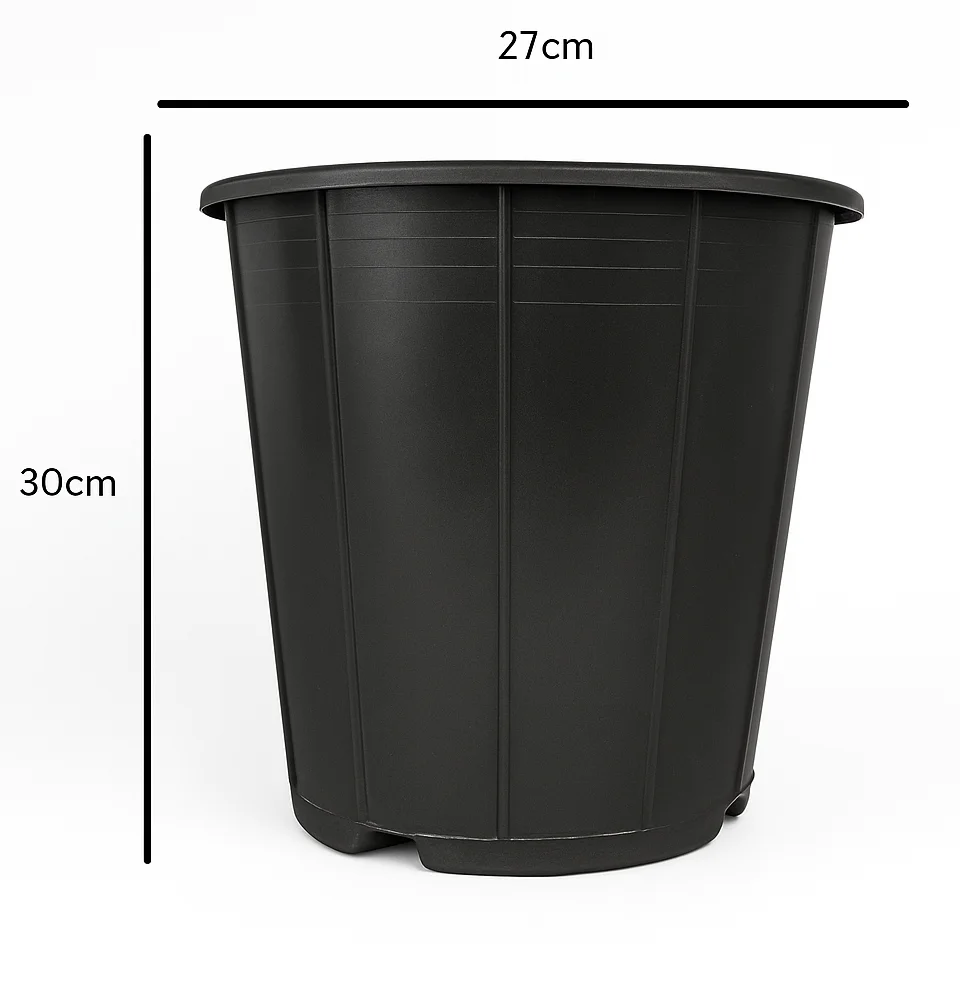 گلدان مشکی سطل ۱۲ با قطر ۲۷ سانتیمتر و ارتفاع ۳۰ سانتیمتر یکی از گزینههای ایدهآل برای پرورش گیاهان بزرگتر و مقاوم در فضای باز و بسته است. این گلدان با طراحی ساده و کاربردی، از پلاستیک مقاوم و فشرده ساخته شده و به دلیل رنگ مشکی خود، رطوبت خاک را بهتر حفظ کرده و مانع از رشد جلبکها میشود.این مدل گلدان به دلیل ابعاد مناسب، برای کاشت درختچههای زینتی، سبزیجات حجیم، گیاهان آپارتمانی بزرگ و همچنین گلهای فصلی بسیار پرکاربرد است. وجود زهکشهای استاندارد در کف گلدان، باعث خروج مناسب آب اضافی شده و از پوسیدگی ریشه جلوگیری میکند.