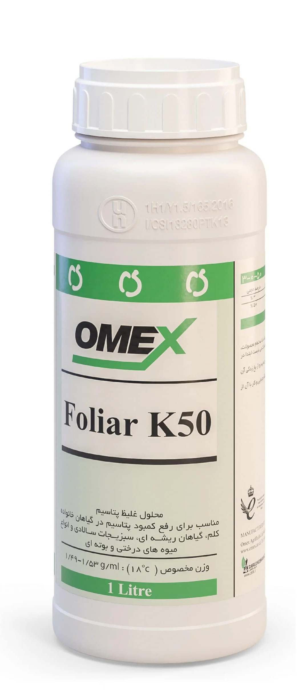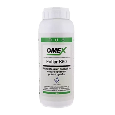 کود پتاسیم فولیار کا 50 محصولی باکیفیت از شرکت معتبر Omex انگلستان است که با فرمولاسیون تخصصی و پتاسیم بالا طراحی شده است. این کود با داشتن ۵۰ درصد پتاسیم محلول (معادل ۳۳ درصد وزنی)، یکی از بهترین راهکارها برای رفع سریع کمبود پتاسیم در گیاهان محسوب میشود و در بهبود کیفیت محصول و افزایش عملکرد نهایی نقش مهمی ایفا میکند.این کود به سرعت از طریق برگها جذب میشود و با تأثیرگذاری سریع، موجب بهبود طعم، رنگ، سایز و میزان قند میوهها شده و آنها را بازارپسندتر میکند.