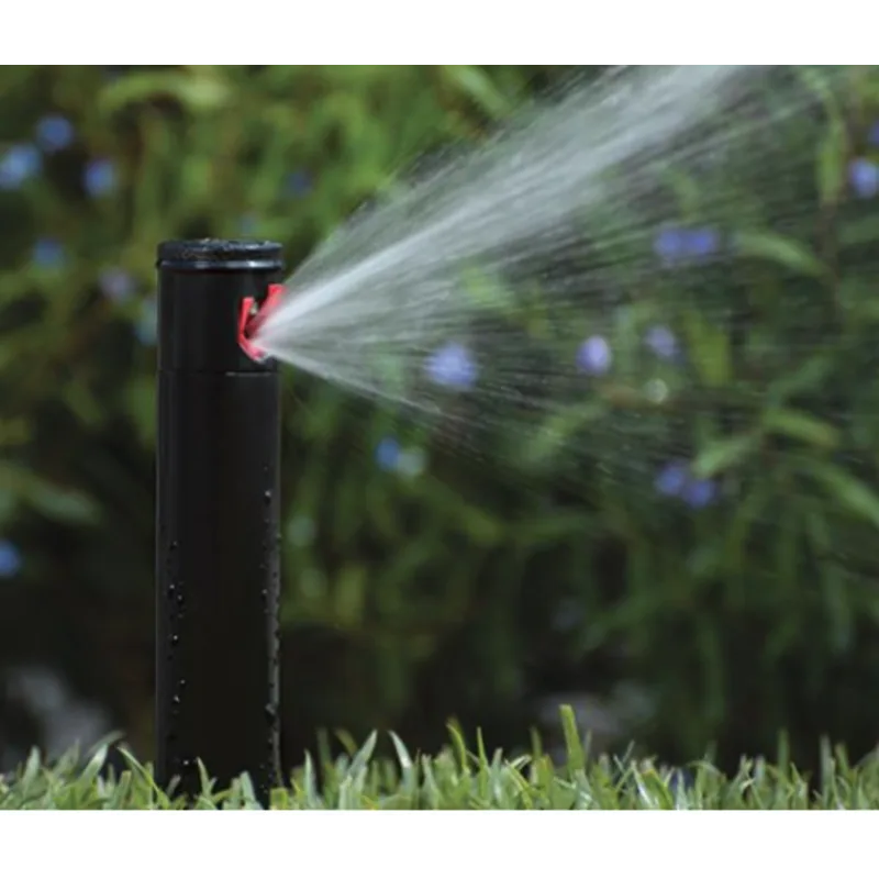 آبپاش مخفی شونده مدل PGJ-04 هانتر با داشتن 12 نازل متفاوت امکان تنظیم شعاع پاشش بین 4.3 تا 11.6 متر را فراهم میکند. این ویژگی باعث میشود بتوان از آن در فضاهای کوچک تا متوسط استفاده کرد و آبیاری یکنواختتری نسبت به اسپریها به دست آورد.