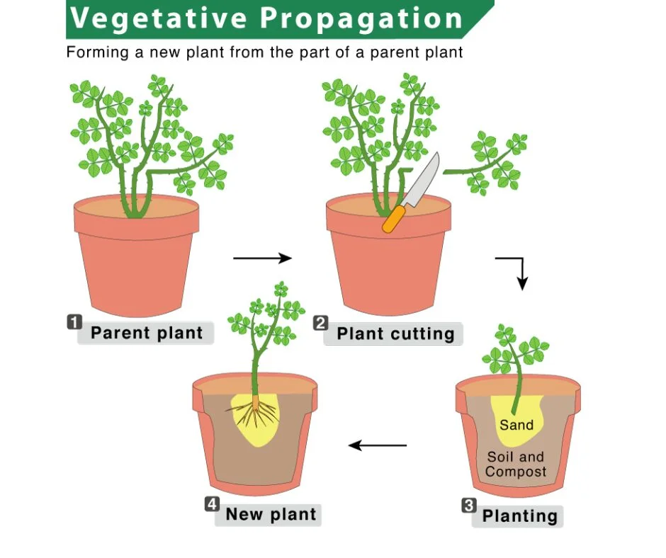 این روش سریع تر از کاشت بذر است و گیاه جدید زودتر به اندازه بالغ می رسد. هزینه کم، حفظ ویژگی های گیاه مادری و امکان تولید تعداد زیاد گیاه از یک مادر از مزایای اصلی است.